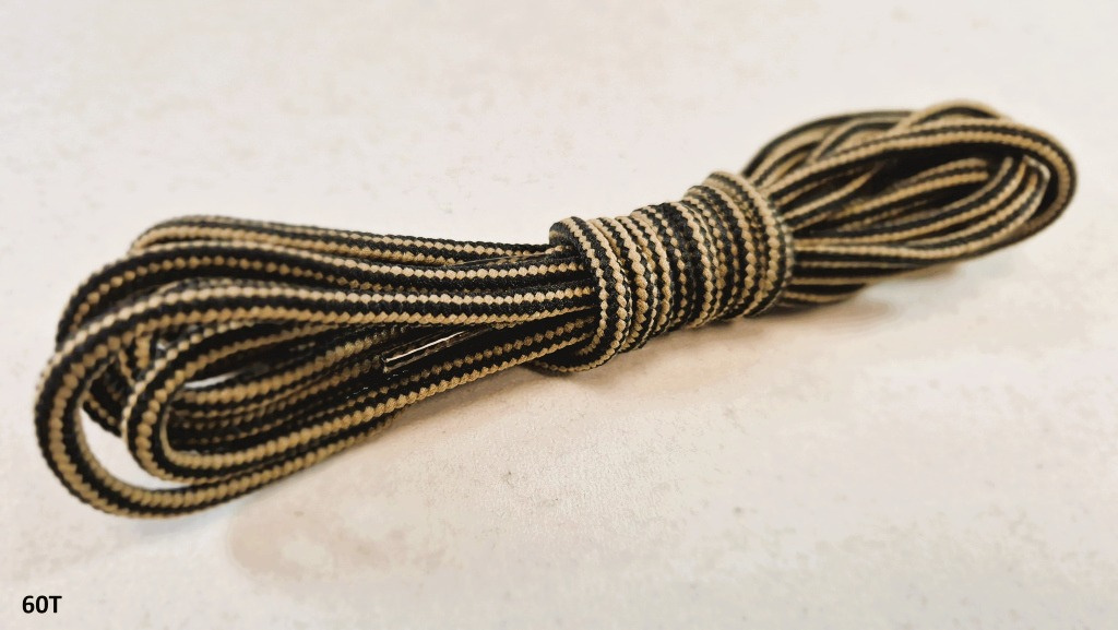 Šnúrky majú okrúhly prierez s priemerom 2 – 3 mm a sú zakončené celuloidovými koncovkami, ktoré uľahčujú šnurovanie a zabraňujú strapkaniu.