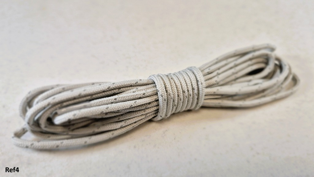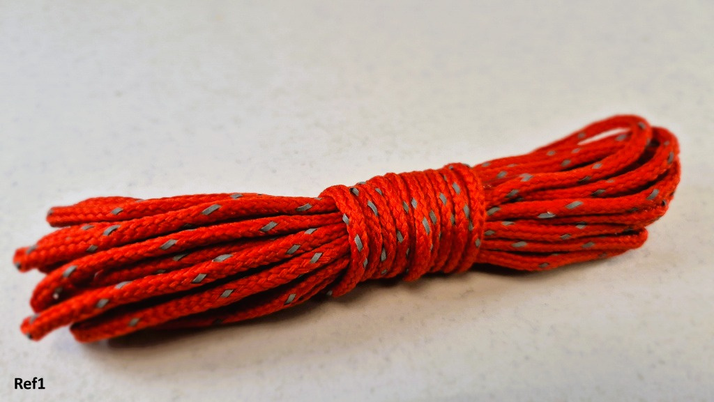Šnúrky s reflexnými prvkami majú okrúhly prierez (priemer 4 mm) a sú ukončené celuloidom.