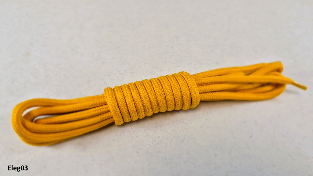 Šnúrky majú okrúhly prierez s hrubším priemerom 4 – 5 mm, čo zaručuje vyššiu pevnosť v ťahu a dlhšiu životnosť aj pri náročnom používaní. Celuloidové zakončenie uľahčuje manipuláciu a zabraňuje strapkaniu.