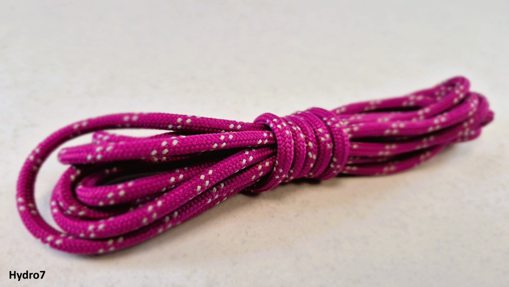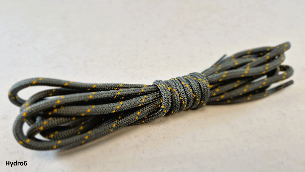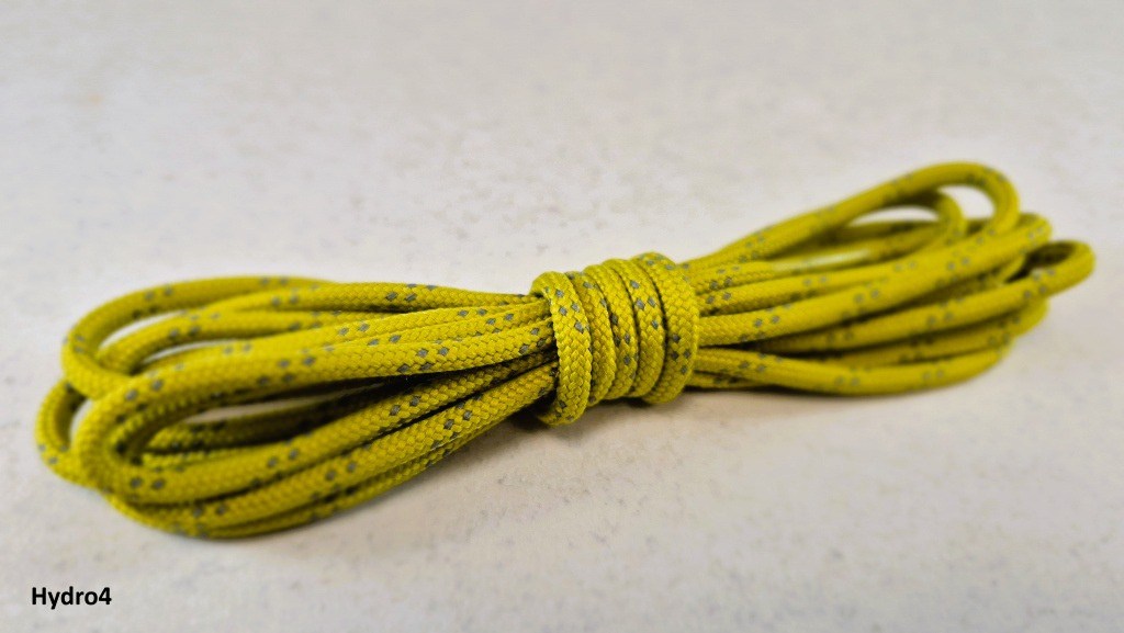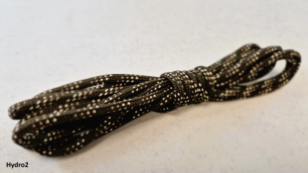 Vonkajší oplet šnúrky je vyrobený z 100 % polyesteru s hydrofóbnou úpravou, ktorá účinne odpudzuje vodu a znižuje nasiakavosť materiálu. Vďaka tomu šnúrky nezadržiavajú vlhkosť a sú odolné voči plesniam, mikroorganizmom a poveternostným vplyvom. Vnútorná časť šnúrky (výplň) je z polyamidu, ktorý zaručuje vysokú pevnosť v ťahu.