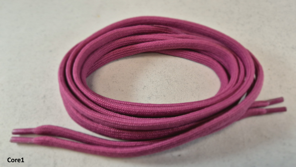 Šnúrky sú vyrobené zo 100 % polyesteru (vrátane výplne), majú oválny prierez a ukončenie celuloidom.
